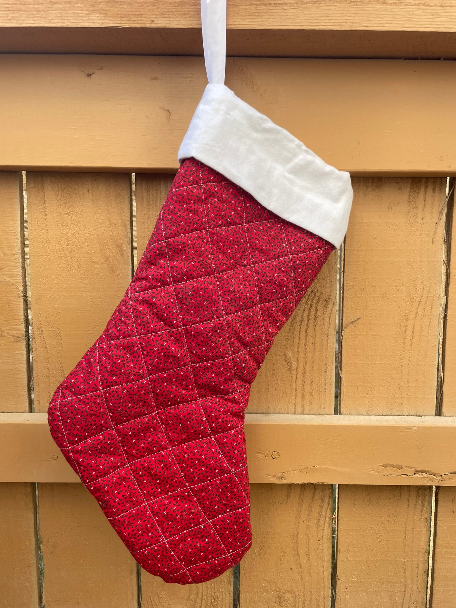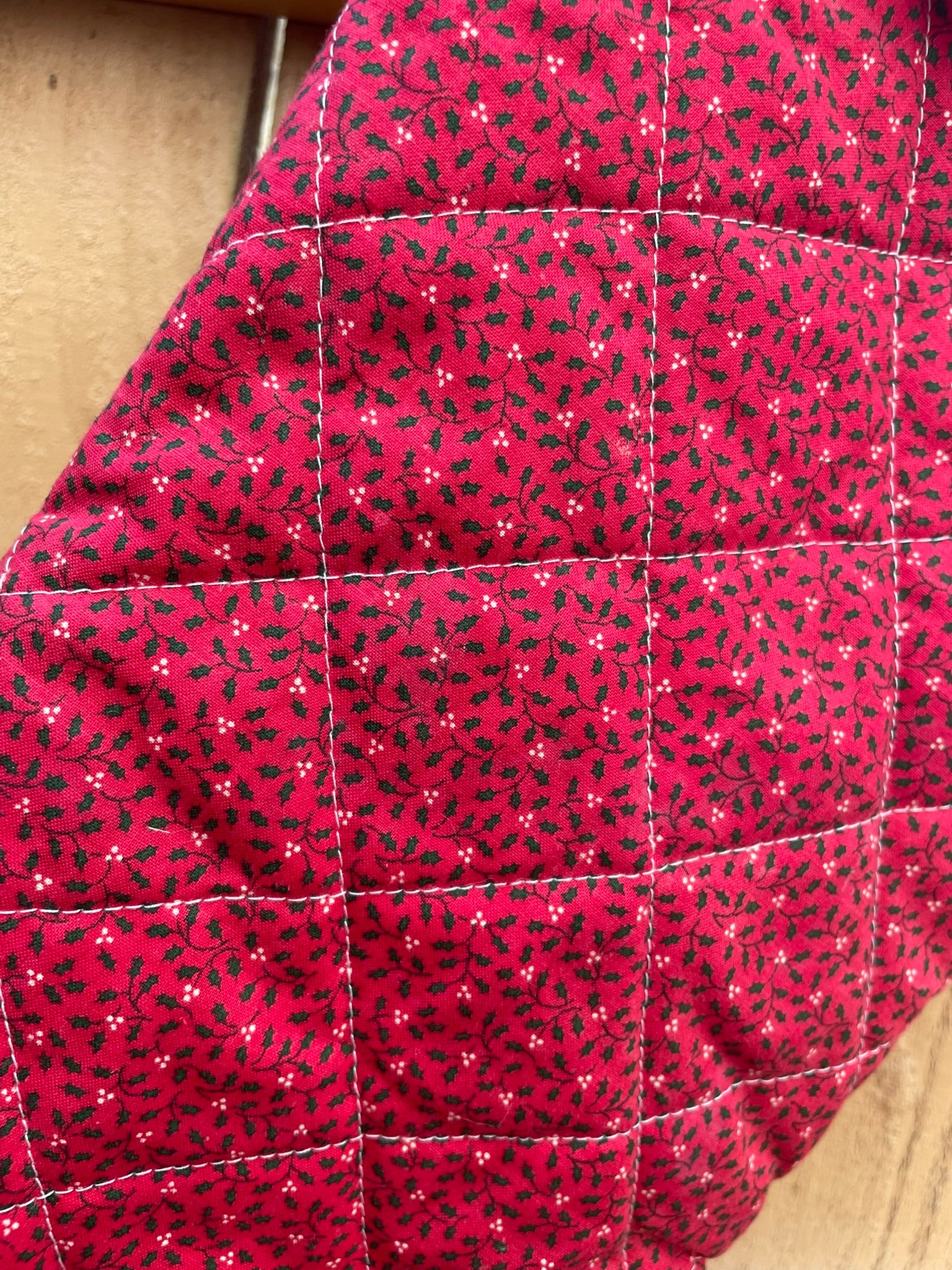 This expertly crafted piece features classic holly motifs with traditional quilting details that evoke nostalgic Christmas traditions. The deep red coloring provides elegant contrast and warmth, making it a sophisticated addition to mantels, doorways, or festive displays. Perfect for collectors of vintage-inspired holiday décor or anyone seeking authentic seasonal style with enduring appeal.